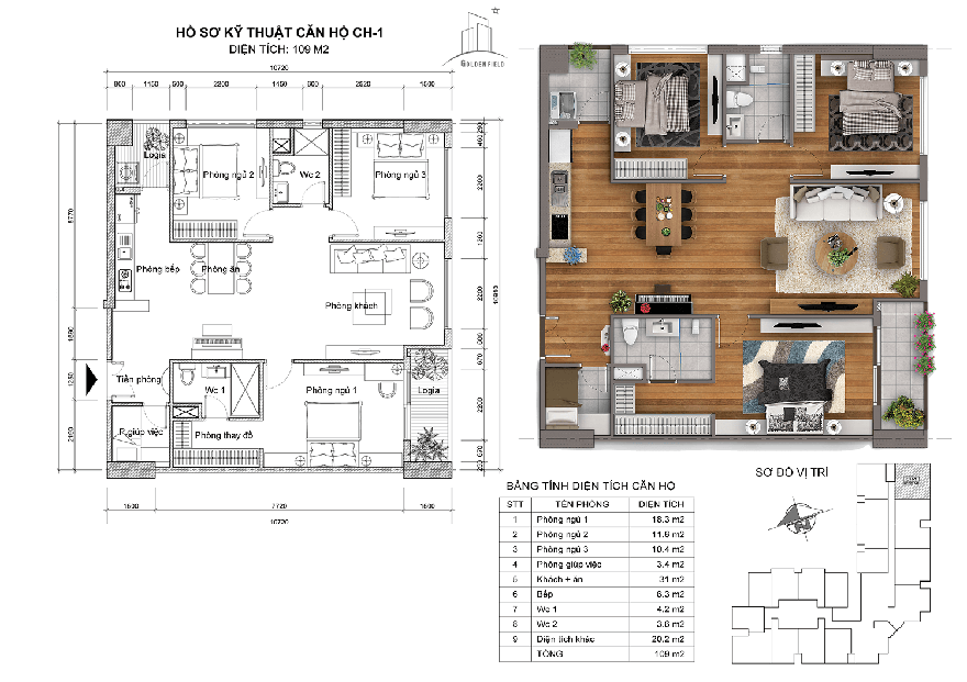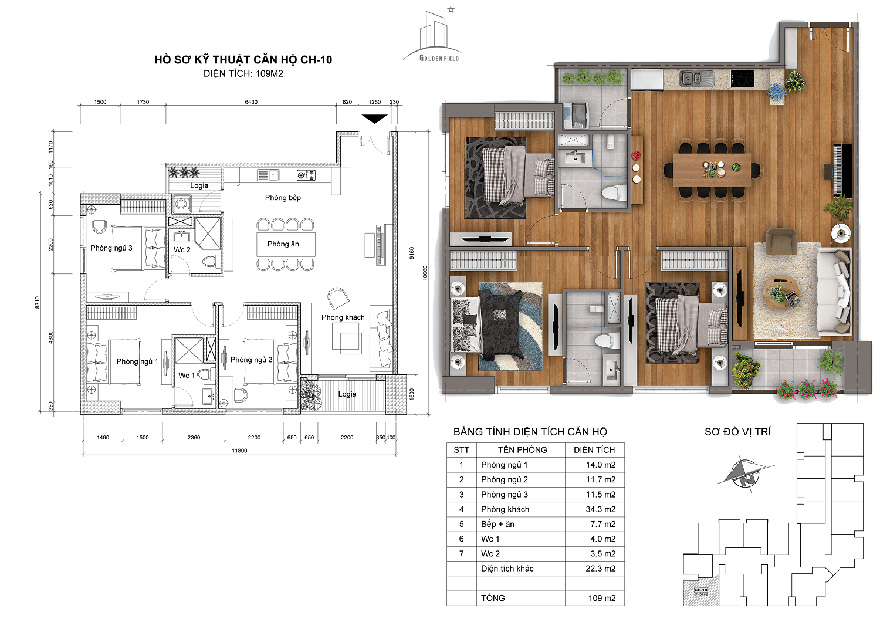 - Diện tích 109m2: CH-01, CH-10