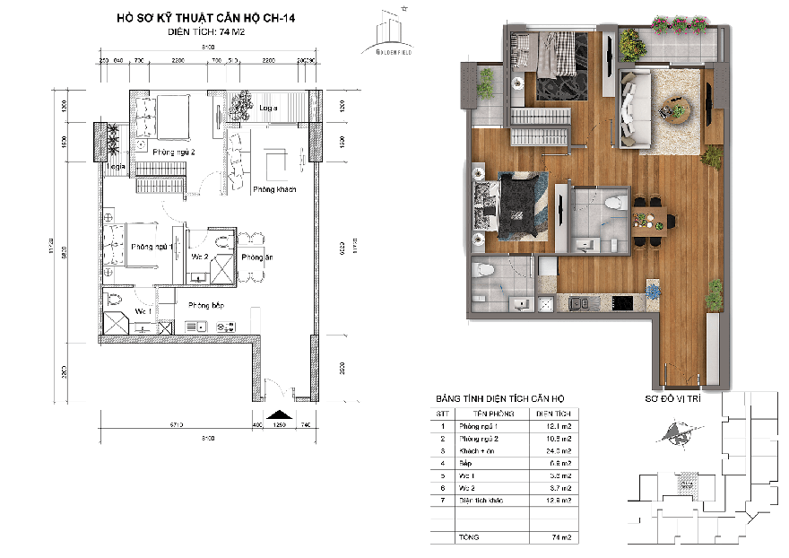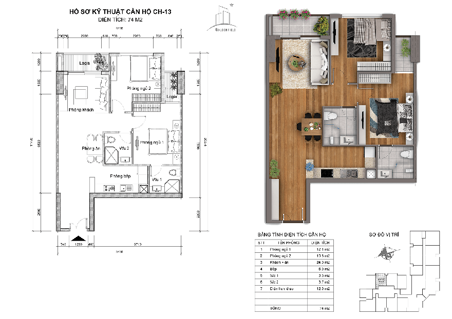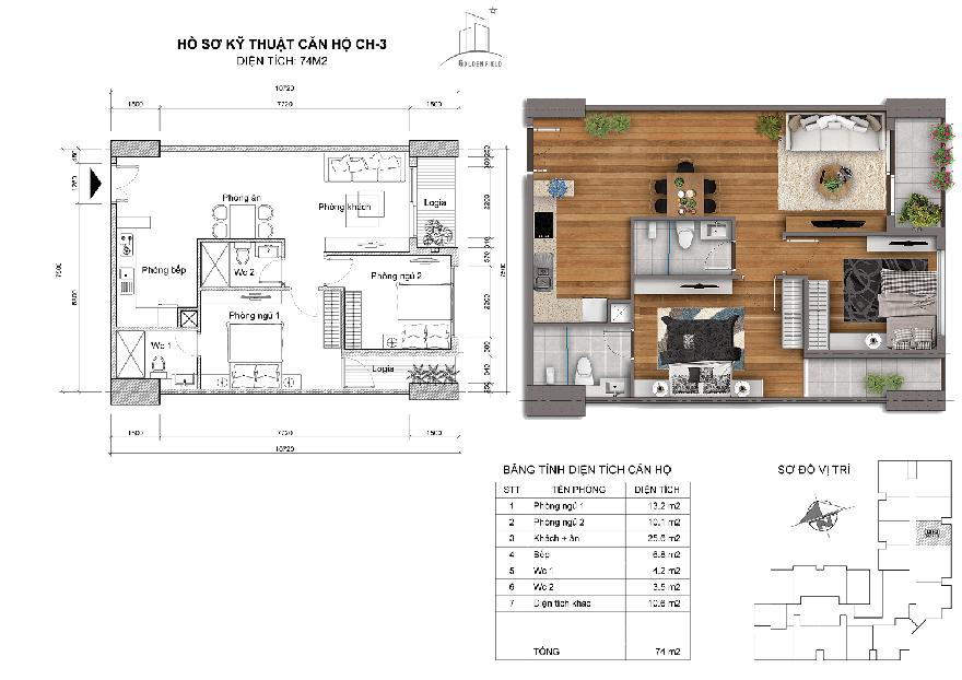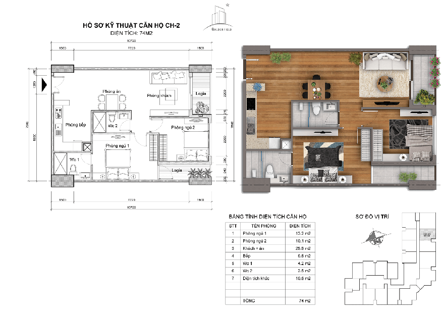 - Diện tích 74m2: CH-02, CH-03, CH-13, CH-14