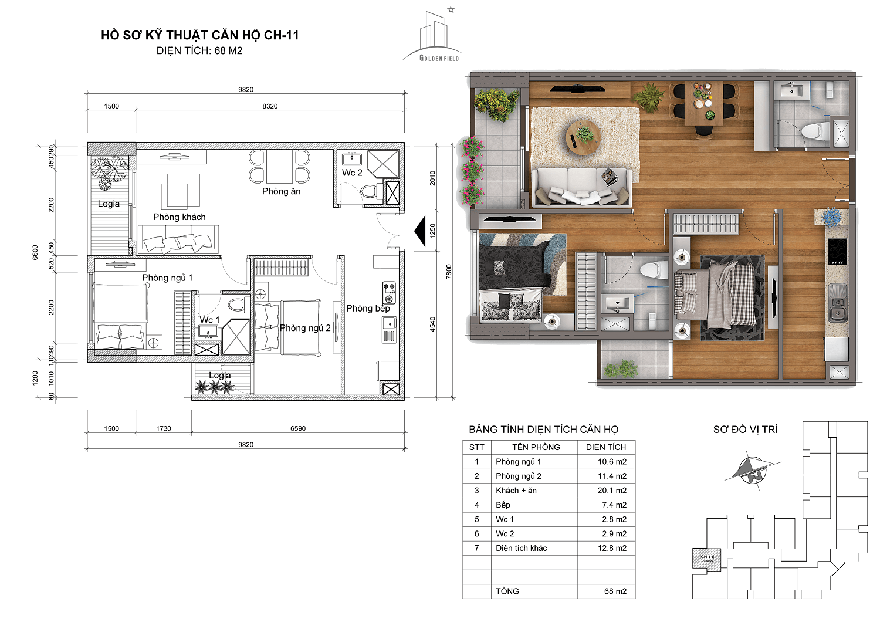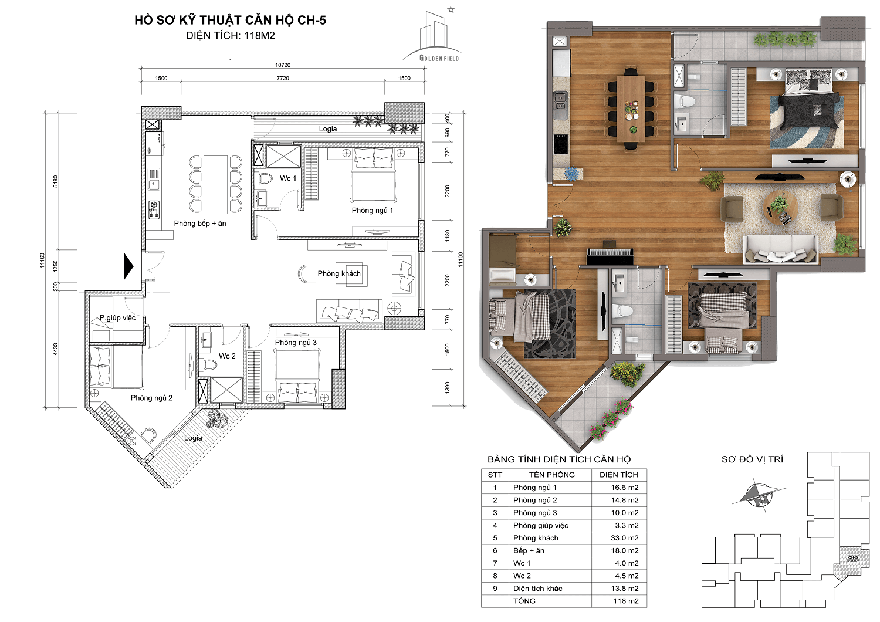 THIẾT KẾ CHI TIẾT CĂN HỘ GOLDEN FIELD MỸ ĐÌNH
