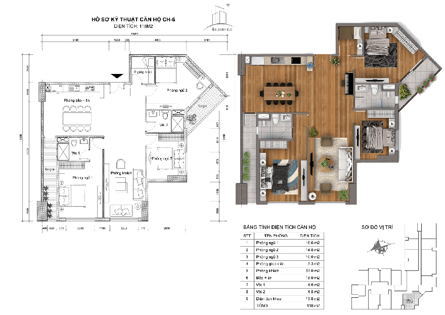 - Diện tích 118m2: CH-05, CH-06