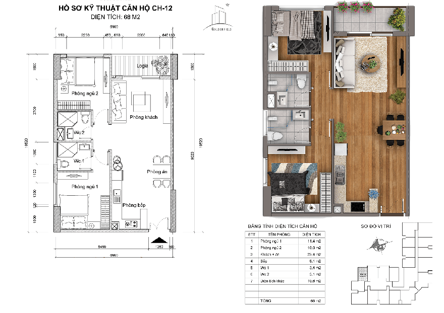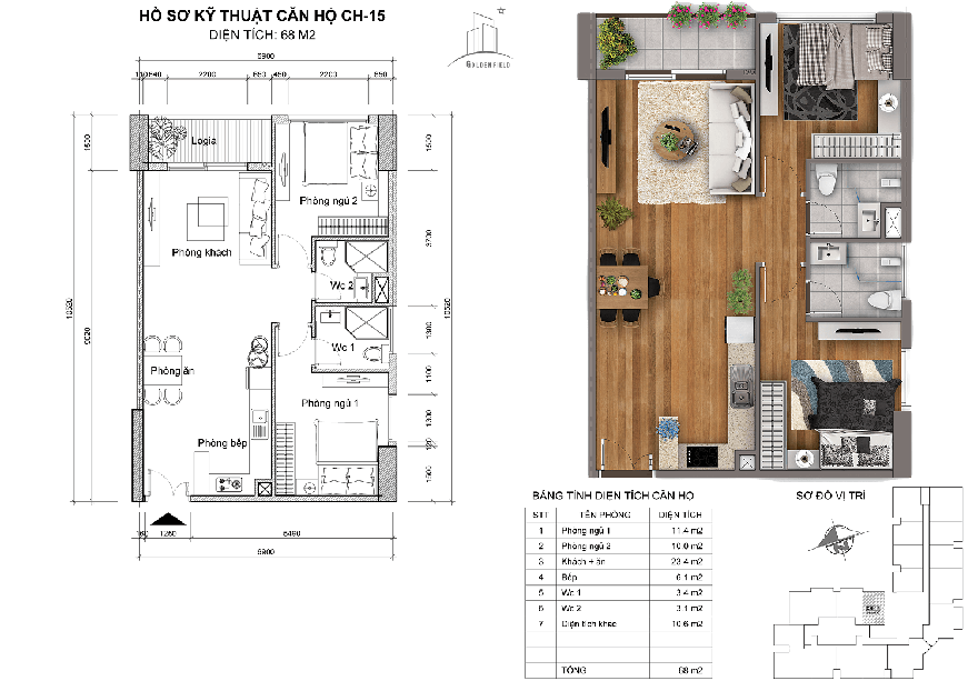 - Diện tích 68m2: CH-11, CH-12, CH-15
