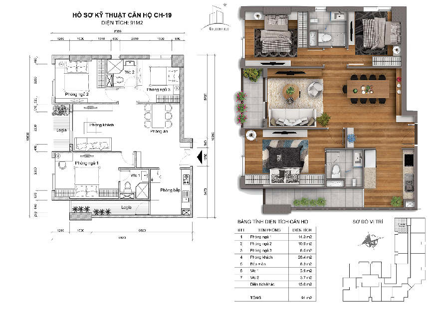 - Diện tích 91m2: CH-19