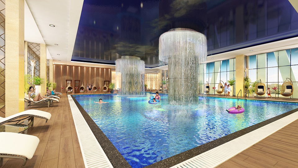 - Tầng 4: Bể bơi 4 mùa rộng 350 m2 & khu vui chơi trẻ em