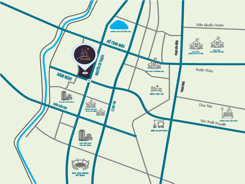 Keangnam: 2,5 km - Dự án MBLand Mỹ Đình nằm giữa Công viên Lê Đức Thọ – Hồ Tùng Mậu.